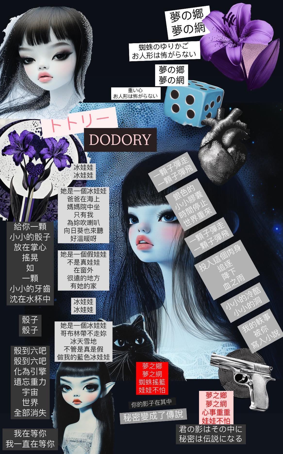 我不是說失蹤的心心居然變成了AI ,而是說,DODORY 的創造者,可能就是心心?這些詩意的歌詞挺像心心的創作風格,會不會其實就是她寫的呢?難道主動抹殺自己的角色來替換成 AI 娃娃的,其實是心心自己?而且,這張專輯的最後一首歌是《夢娃娃》(夢人形),在眨眼睛《夢之鄉》專輯中也有同樣歌名的歌,歌詞也一模一樣,不過是唱中文。我先前為了月仔彷彿想抹去心心的存在而疑惑憤怒,如今,我卻好像在這張神秘而憂戚的專輯中,聽見了消失的她的聲音。